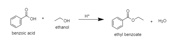 Our ChemSoc recently carried out a microscale “Fischer esterification” to make ethyl benzoate from ethanol and benzoic acid. We conducted the practical in microscale to help manage the hazards presented by the use of concentrated sulfuric acid, required as a catalyst to drive the reaction forwards. In the equation below this is represented as H+.