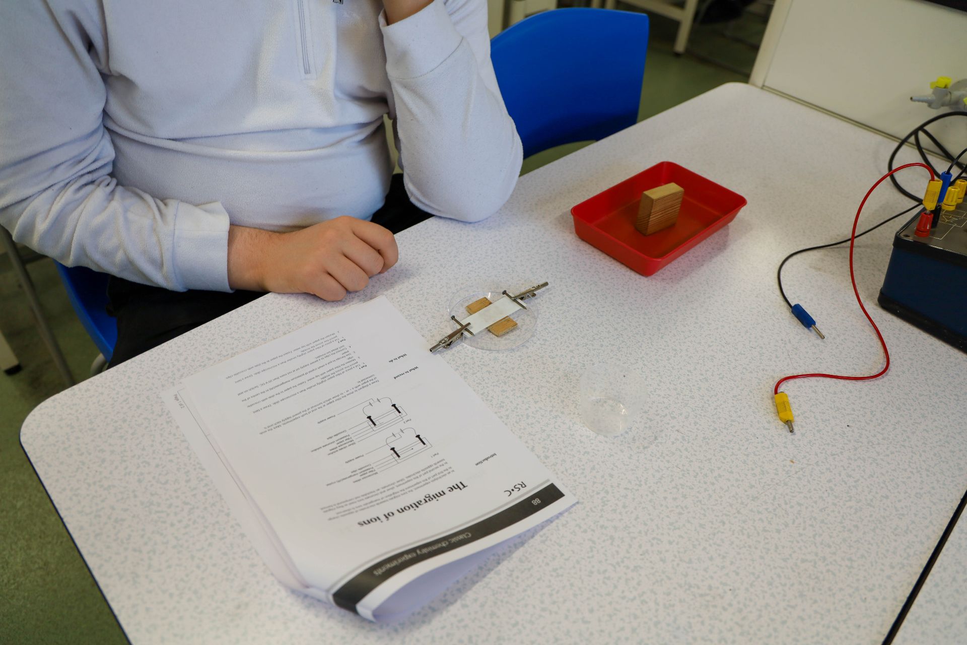 Our ChemSoc recently carried out a microscale electrochemical cell practical to separate two oppositely charged ions and enable them to migrate towards each other.